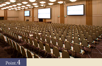 全会場無線LAN(Wi-Fi)によるインターネット環境を整備し、国内外の無線LAN(Wi-Fi)端末によるインターネット接続が可能。大人数によるパソコンを使用したインターネットミーティングや、プレゼンテーションにも最適です。