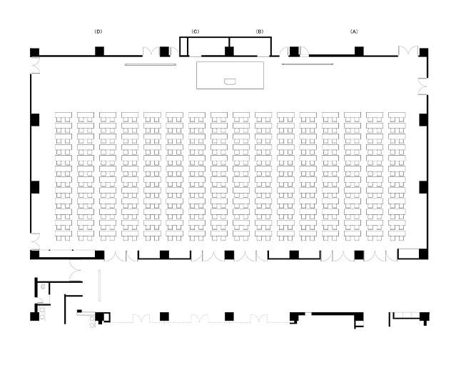 | 4F | 大宴会場 | 悠久 | 全室 | 1,010 | 306 | 43.0×23.5×6.0 | 600 | 1,200 | 600 | 1,200 |