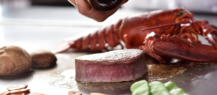 目の前で新鮮な魚介類や最上質の牛肉を焼き上げてくれる贅沢なおもてなし。