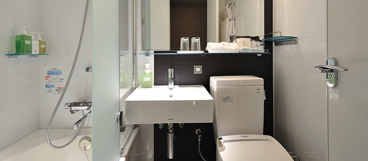 | 客室備品 | 地上デジタル対応液晶テレビ(26型)/ 電話 / インターネット接続(無線・有線LAN形式) / 湯沸かしポット / 冷蔵庫 / ヘアドライヤー / ズボンプレッサー / 加湿機能付き空気洗浄機 / カプセル式コーヒーメーカー(無料)/ 目覚まし時計 |