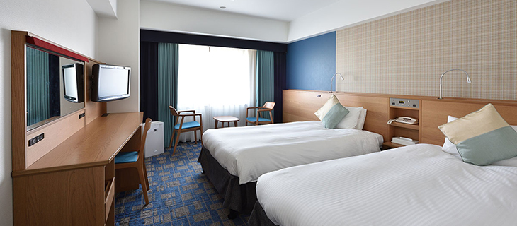 | 客室備品 | 地上デジタル対応液晶テレビ(26~32型) / 電話 / インターネット接続(無線・有線LAN形式) / 湯沸かしポット / 冷蔵庫 / ヘアドライヤー / ズボンプレッサー / 洗浄機付トイレ/空気清浄機(一部加湿機能付き) |
