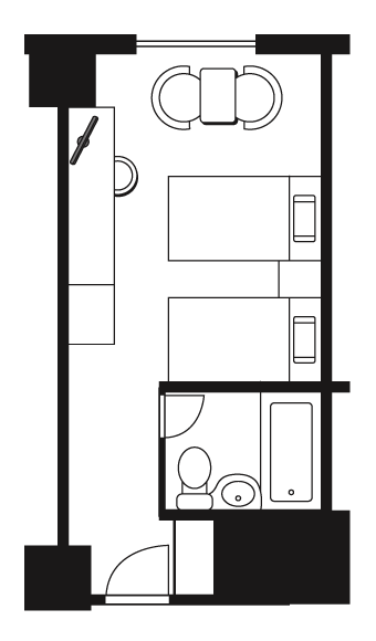 | 広さ | 26平米 | 3名利用 | 可能(スタッキングベッド又は、エキストラベッド利用) 3名利用の詳細はこちら |