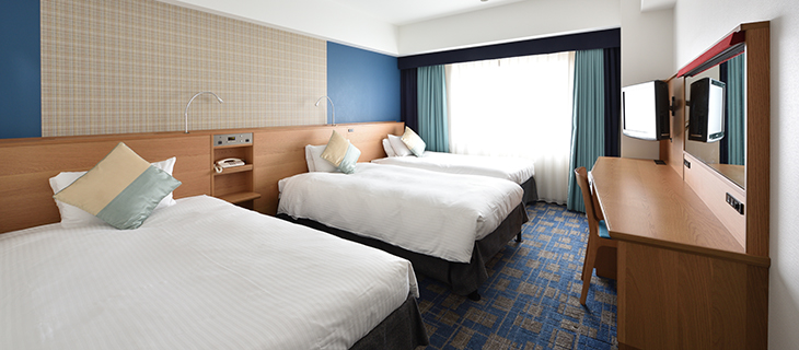 | 客室備品 | 地上デジタル対応液晶テレビ(26~32型) / 電話 / インターネット接続(無線・有線LAN形式) / 湯沸かしポット / 冷蔵庫 / ヘアドライヤー / ズボンプレッサー / 洗浄機付トイレ/空気清浄機(一部加湿機能付き) |