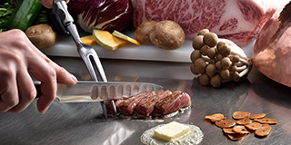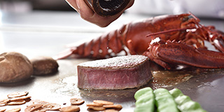 特選牛肉套餐(NOZOMI) 24,700 日圓碳烤新鮮龍蝦(1/2)/特選牛肉沙朗牛排(120 公克)或菲力牛排(100 公克)/當季熟菜與沙拉/蒜頭飯/紅味增湯(味增湯)/泡菜/甜點/咖啡 |