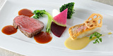 饕客晚餐 8,000 日圓開胃菜/湯/魚盤/雪酪/主菜(牛柳或碳烤伊比利亞黑毛豬)/甜點/飯店自製麵包/咖啡或茶 |
