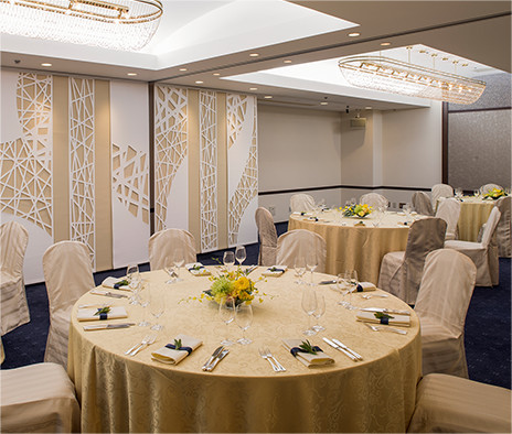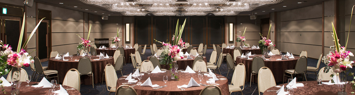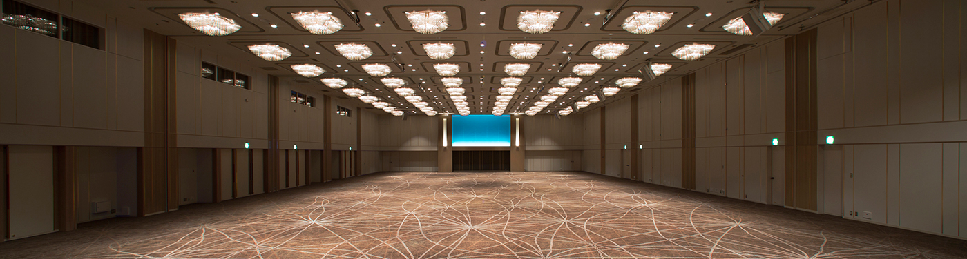 最大1,200名収容可能な宴会場。ディナーパーティをはじめ、各種レセプション、セミナー、会議などあらゆる用途にご利用いただける、上質で快適な空間をご用意しています。
