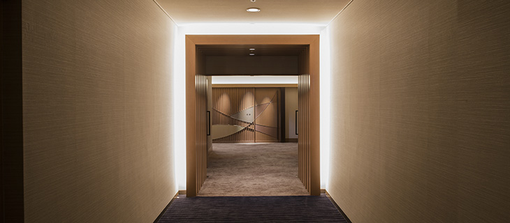 重厚な扉の奥は、直線と曲線による適度な規則性とゆらぎを融合させた「凪(なぎ)スタイル」をテーマにした特別空間が広がります。