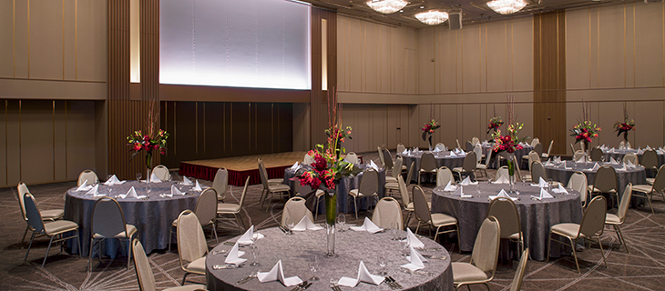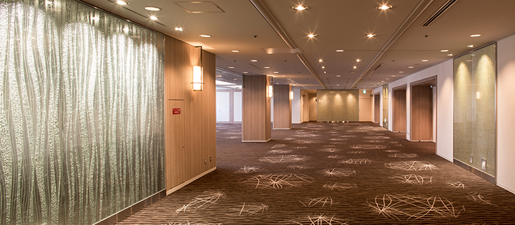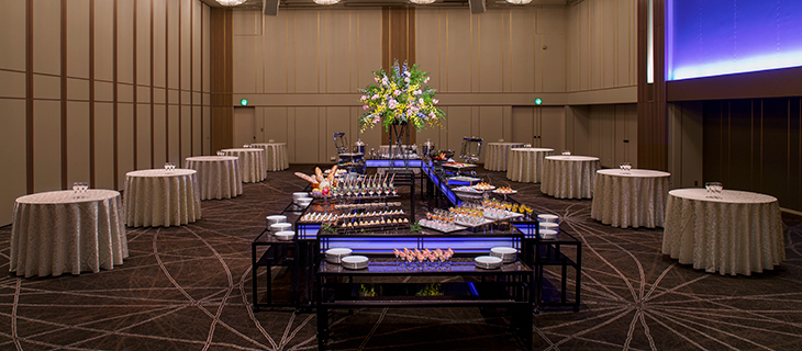 落ち着きを感じる空間で、国際会議、学術会議をはじめ各種展示会、講演会、レセプション、ショー、ご披露宴など、多様なパーティシーンを華やかに演出いたします。