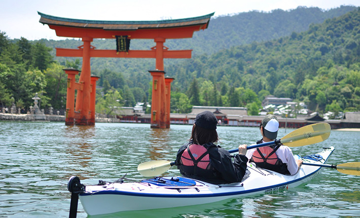 There is another activity you can enjoy this beautiful scenery of Miyajima. It is Sea Kayak! It depends on the conditions on the day you can paddle under the floating “Torii” gate. It must become a precious memory for you to see a great view of Miyajima from Seto Inland Sea. Some shops have kayaking tours. If you need more details, check the website below.