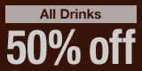 All the drinks 50% off 4:00pm-6:00pm every day. *Exclude Bottle Items *May not be used with any other discount. |