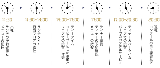 開店直後のランチタイムから、ティータイム、ディナータイム、バータイムまで、