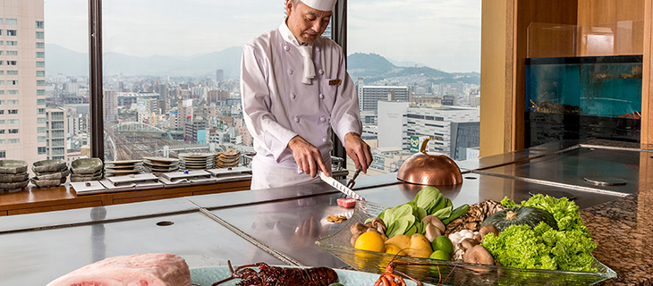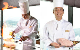 目の前で新鮮な魚介類や最上質の牛肉を焼き上げてくれる贅沢なおもてなし。