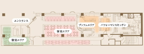 | 個室タイプ | 丸テーブル個室2室、長方形テーブル個室5室 | |