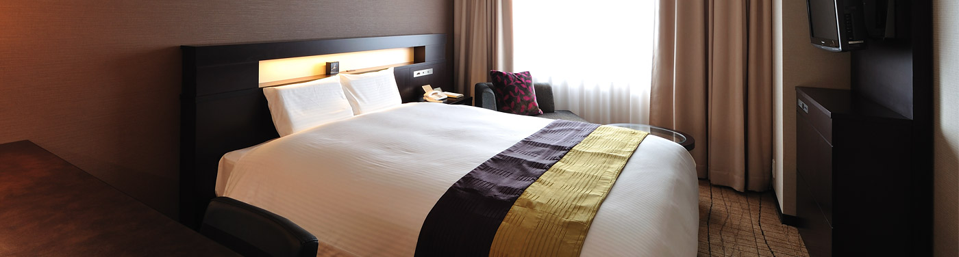 | 客室備品 | 地上デジタル対応液晶テレビ(26型)/ 電話 / インターネット接続(無線・有線LAN形式) / 湯沸かしポット / 冷蔵庫 / ヘアドライヤー / ズボンプレッサー / 加湿機能付き空気洗浄機 / カプセル式コーヒーメーカー(無料)/ 目覚まし時計 |