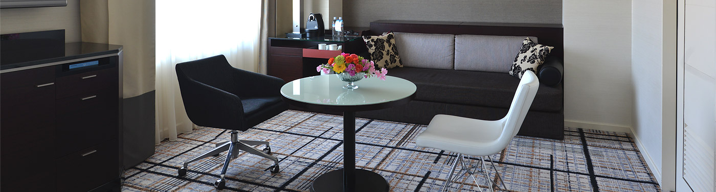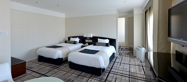| 客室備品 | 地上デジタル対応液晶テレビ(42型)/ 電話 / インターネット接続(無線・有線LAN形式) / 湯沸かしポット / 冷蔵庫 / ヘアドライヤー / ズボンプレッサー / 加湿機能付き空気洗浄機 / カプセル式コーヒーメーカー(無料)/ 目覚まし時計 |