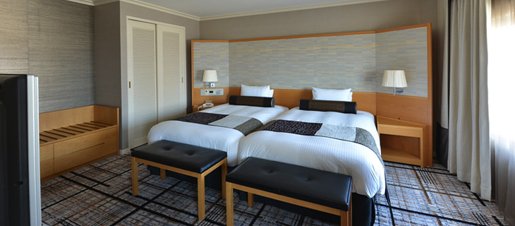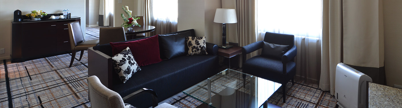 | 客室備品 | 地上デジタル対応液晶テレビ(46・42型)/ 電話 / インターネット接続(無線・有線LAN形式) / 湯沸かしポット / 冷蔵庫 / ヘアドライヤー / ズボンプレッサー / 加湿機能付き空気洗浄機 / カプセル式コーヒーメーカー(無料)/ 目覚まし時計 |