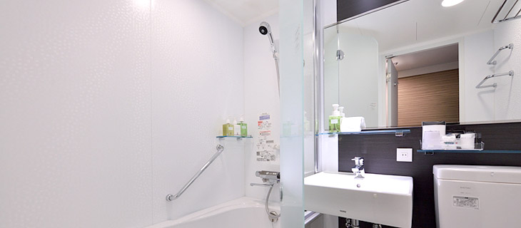 | 客室備品 | 地上デジタル対応液晶テレビ(26型) / 電話 / インターネット接続(無線・有線LAN形式) / 湯沸かしポット / 冷蔵庫 / ヘアドライヤー / ズボンプレッサー / 清浄機付トイレ / 加湿機能付き空気洗浄機 / ドリップ式コーヒー(無料)/ 目覚まし時計 |