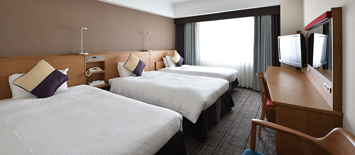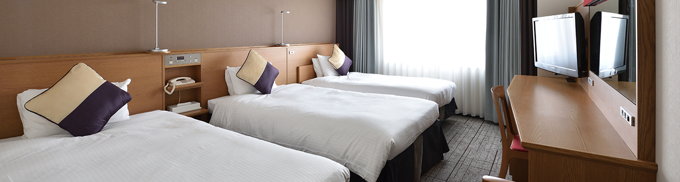 | 客室備品 | 地上デジタル対応液晶テレビ(26~32型) / 電話 / インターネット接続(無線・有線LAN形式) / 湯沸かしポット / 冷蔵庫 / ヘアドライヤー / ズボンプレッサー / 洗浄機付トイレ/空気清浄機(一部加湿機能付き) |